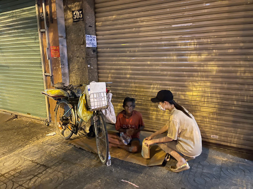 Cô nàng tự tay gói quà bánh và cũng không quên gửi lời chúc Tết đến từng người vô gia cư tại một số cung đường ở Quận 10, Quận Phú Nhuận.