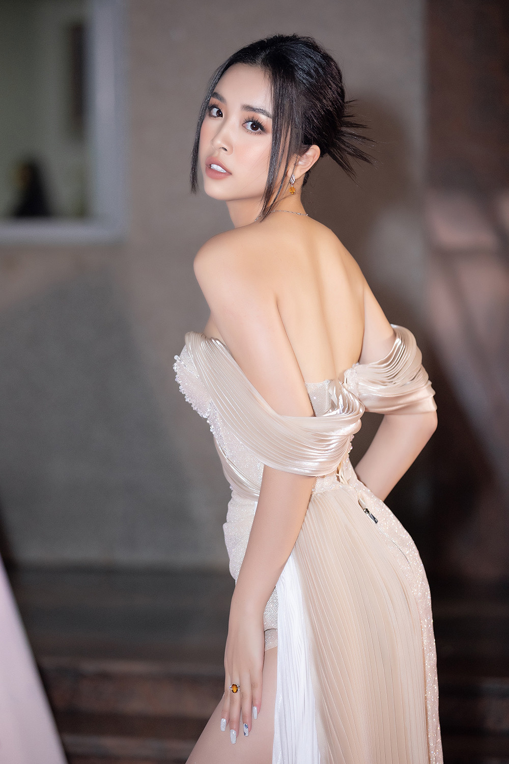 Hoa Hậu Tiểu Vy chọn lựa thiết kế độc đáo của NTK Đỗ Long giúp khoe triệt để đường cong của mình.