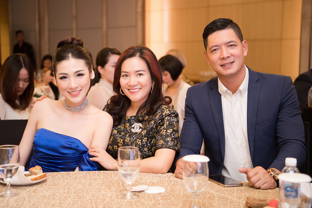 Tú Anh bên vợ chồng MC Bình Minh ở sự kiện.