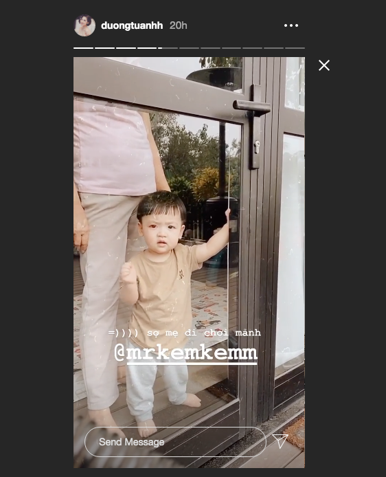 Bản tin Hoa hậu 14/3: Do có con nhỏ nên trong thời gian này Á hậu Tú Anh hạn chế tối đa việc ra đường để đảm bảo an toàn sức khoẻ cho gia đình. Cô thường xuyên chia sẻ hình ảnh về con trai đáng yêu trên trang cá nhân.