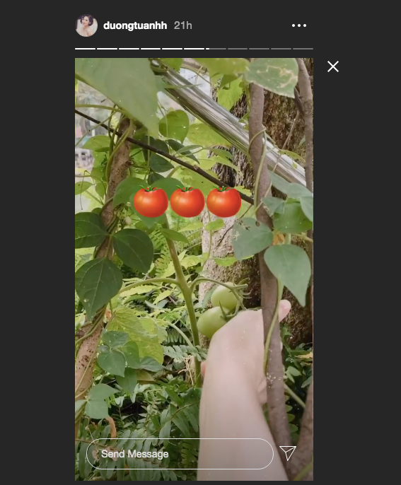 Á hậu Việt Nam 2014 còn tranh thủ trồng cà chua.