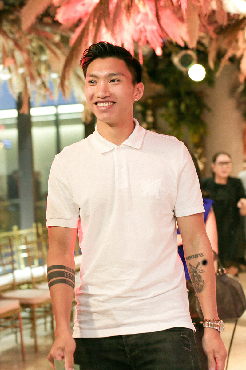 Tối qua cầu thủ Đoàn Văn Hậu bất ngờ có mặt tại một show thời trang ở Hà Nội với tư cách khán giả. Anh chàng diện áo trắng, khoe vẻ rắn rỏi và điển trai như 'soái ca'.