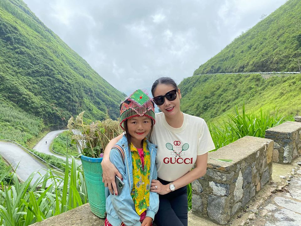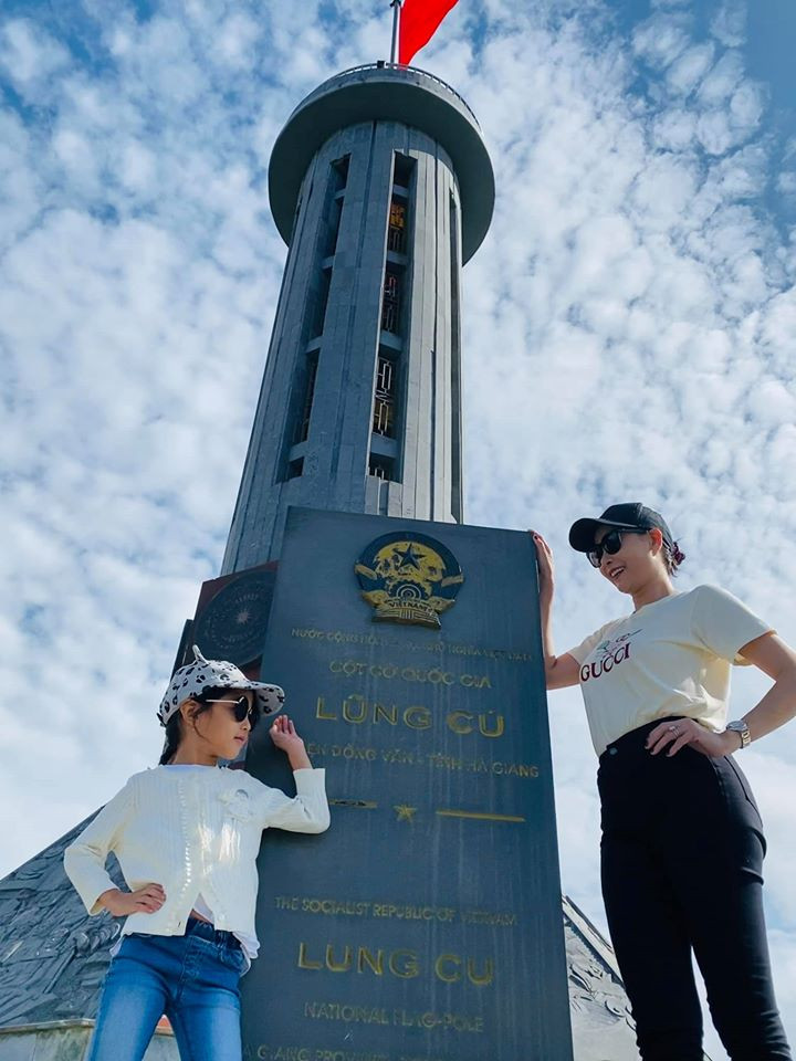 Hà Kiều Anh và con gái đặt chân đến cột cờ Lũng Cú.