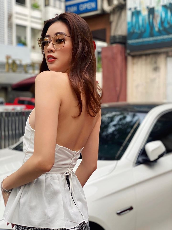 Hoa hậu Khánh Vân giản dị với áo trắng khi xuống phố cuối tuần.