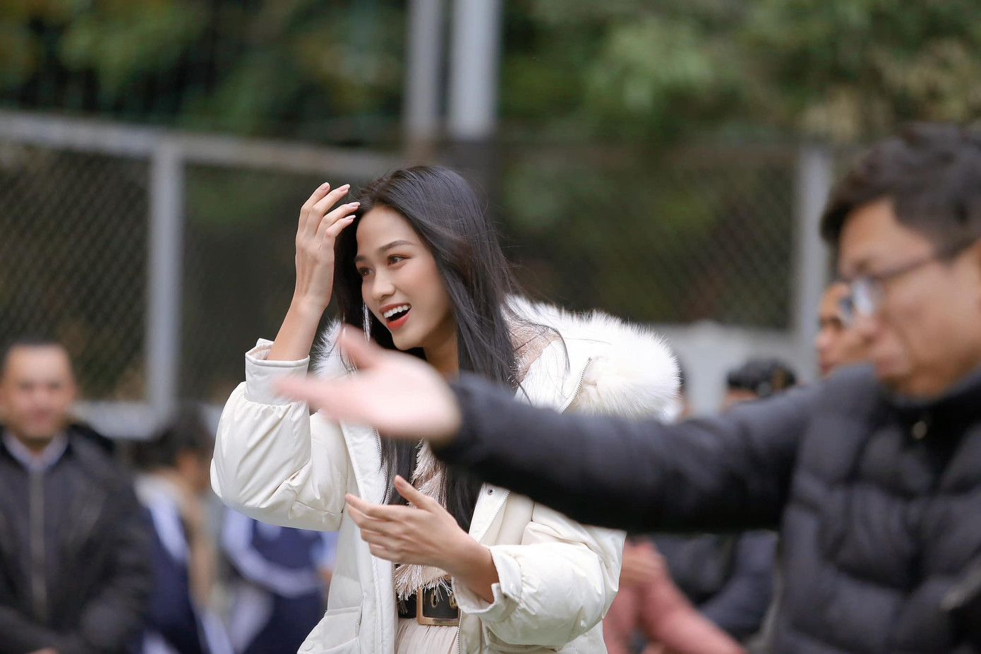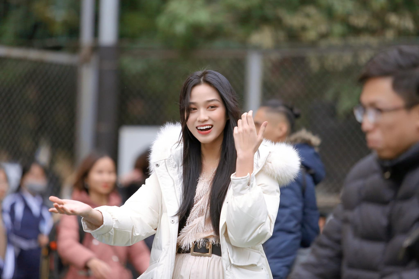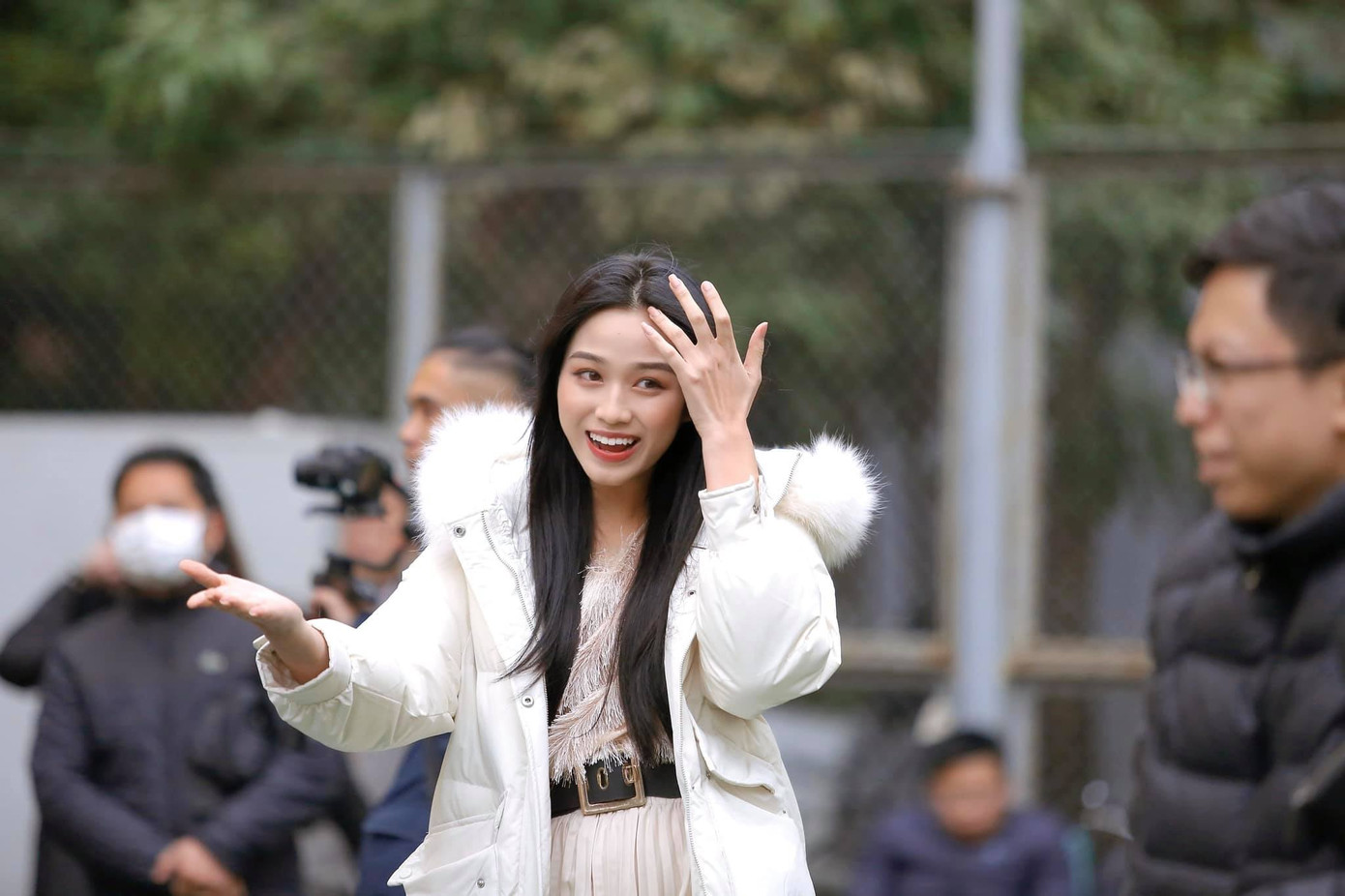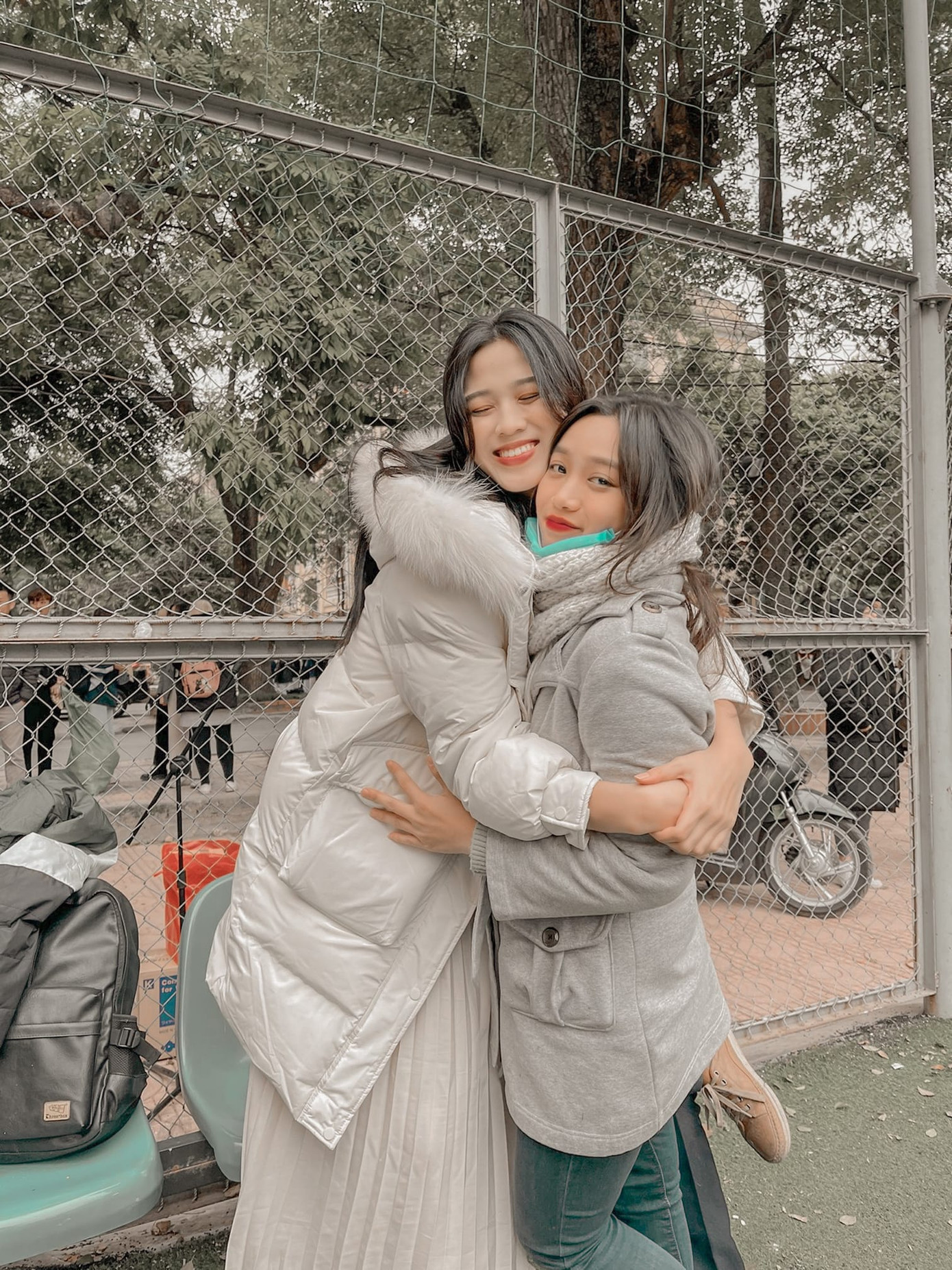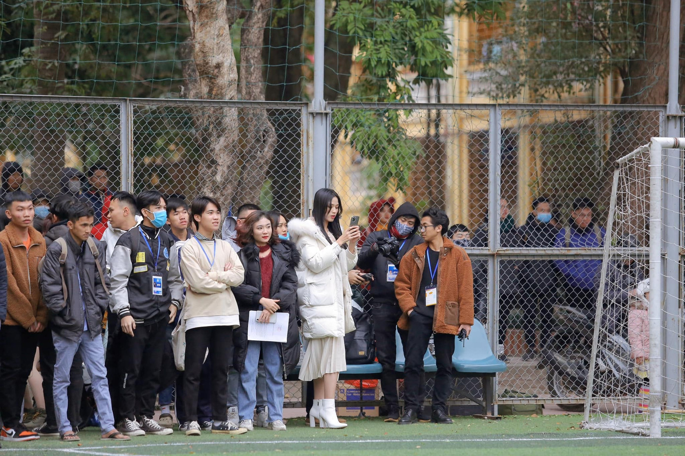 'Trời lạnh 10 độ nhưng tinh thần thể dục thể thao vẫn nóng lắm nạ. Bình thường Hà rất ít có cơ hội đi xem bóng đá trực tiếp nhưng hôm qua nghe nói trường khai mạc giải bóng đá là phải tức tốc chạy đến xem cho nóng người nạ' - nàng hậu sinh năm 2001 chia sẻ.