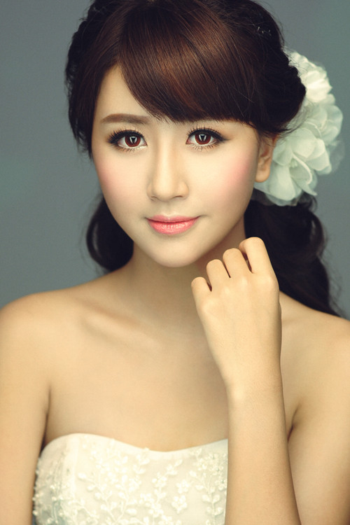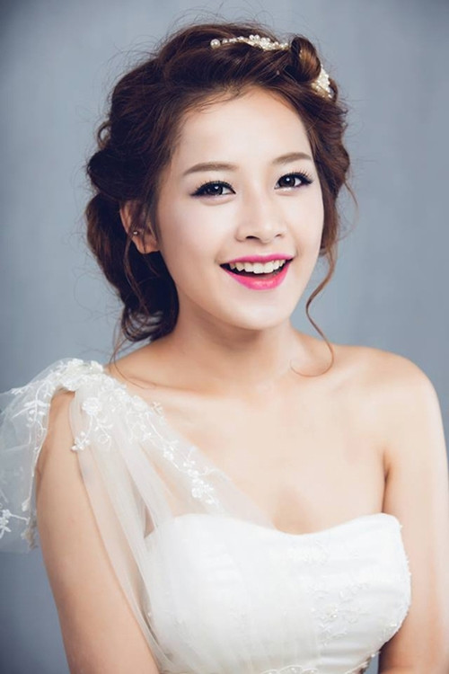 Kiểu make-up làm tôn lên các đường nét thanh tú trên gương mặt Quỳnh Anh, khiến hot girl Hà thành trông như một cô dâu kiều diễm trong ngày lên xe hoa.