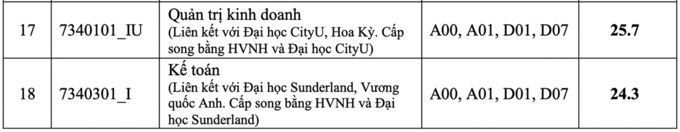 Ngành Kế toán chương trình liên kết với Đại học Sunderland (Vương quốc Anh) lấy thấp nhất nhưng vẫn cao hơn năm ngoái 2,8 điểm.