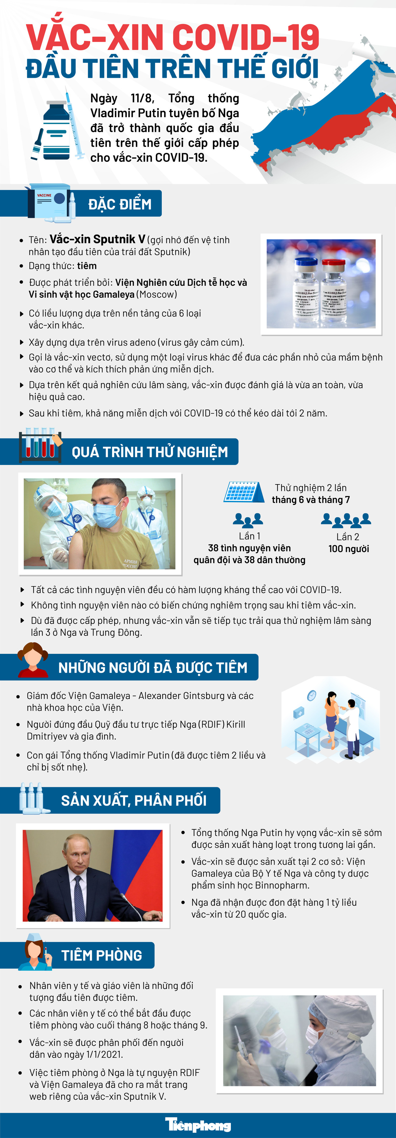 TPO - Ngày 11/8, Tổng thống Vladimir Putin tuyên bố Nga đã trở thành quốc gia đầu tiên trên thế giới cấp phép cho vắc-xin COVID-19.