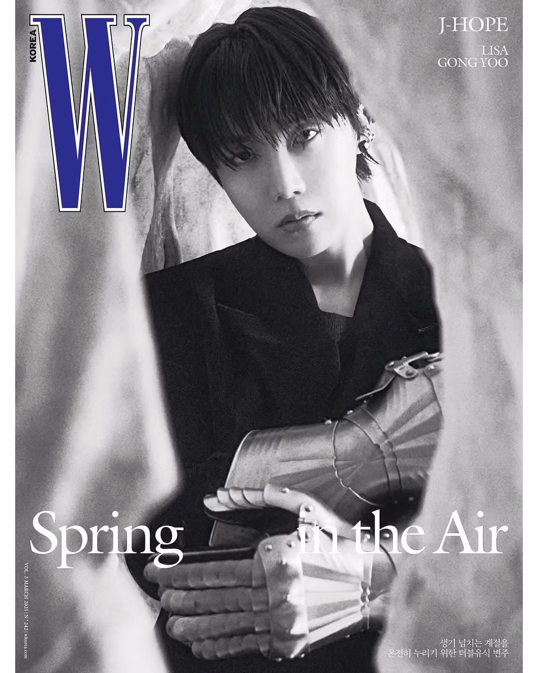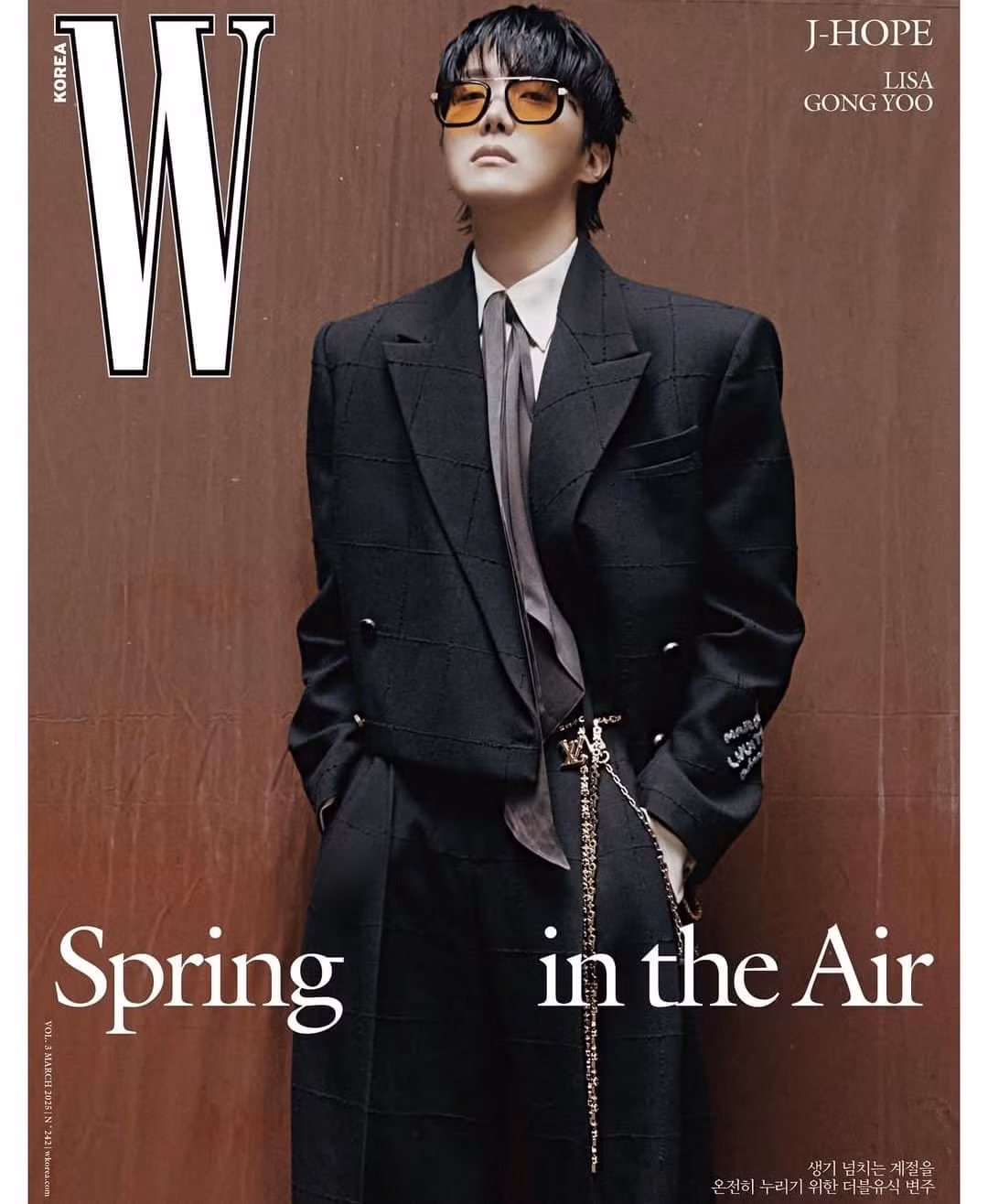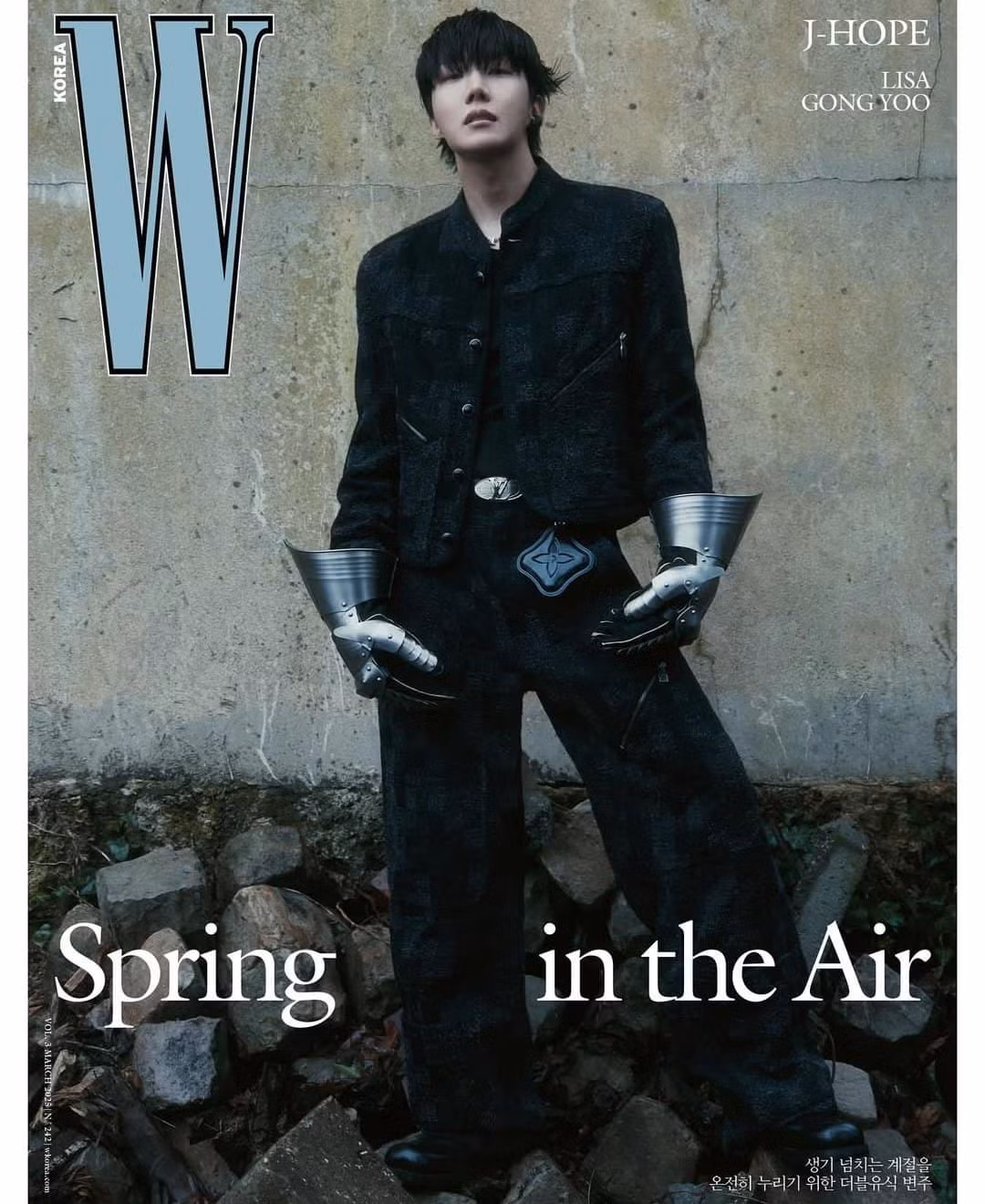 j-hope BTS nhận được nhiều phản hồi tích cực trong lần lên bìa W Hàn số tháng 3/2025. Chủ nhân bản hit on the street diện trang phục tối màu, lịch lãm nằm trong BST Xuân Hè 2025 dành cho nam do Giám đốc Sáng tạo Pharrell Williams thiết kế. Nam đại sứ tạo điểm nhấn với phụ kiện kính mát, găng tay thép mang phong cách futuristic.