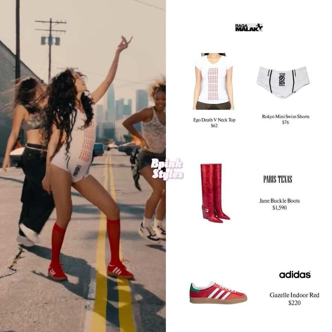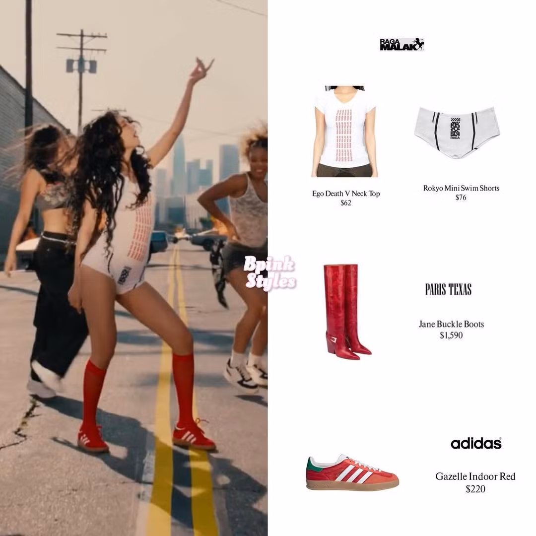 Trong các phân cảnh thả dáng bên xế xịn, cô đeo đôi bốt da của thương hiệu Paris Texas có giá 1590 USD (gần 40 triệu đồng). Khi thực hiện vũ đạo, nữ idol 9X lăng xê thiết kế Gazelle Indoor của adidas giá 220 USD (5,4 triệu đồng).