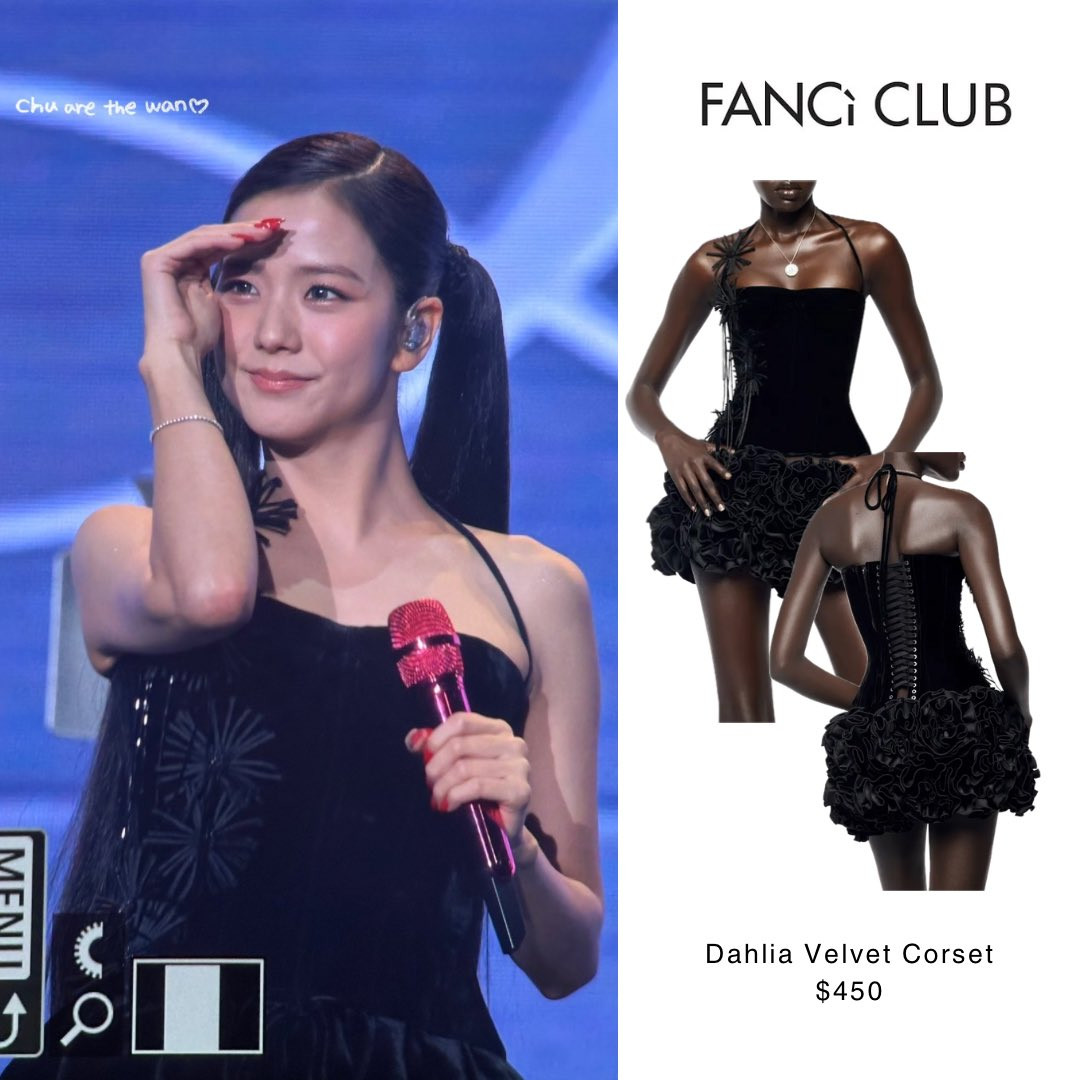 Cũng trong tour châu Á, ở đêm diễn thứ hai tại Tokyo (Nhật Bản), nữ idol lăng xê thiết kế Dahlia Velvet Corset của thương hiệu FANCì CLUB. Cô phối cùng chân váy phồng dáng bí ngô, buộc tóc hai bên để hoàn thiện vẻ ngoài thời thượng.