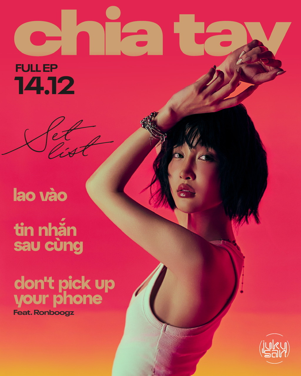 EP Chia tay và MV Lao vào của Juky San sẽ chính thức ra mắt vào 19h00 ngày 14/12/2024.