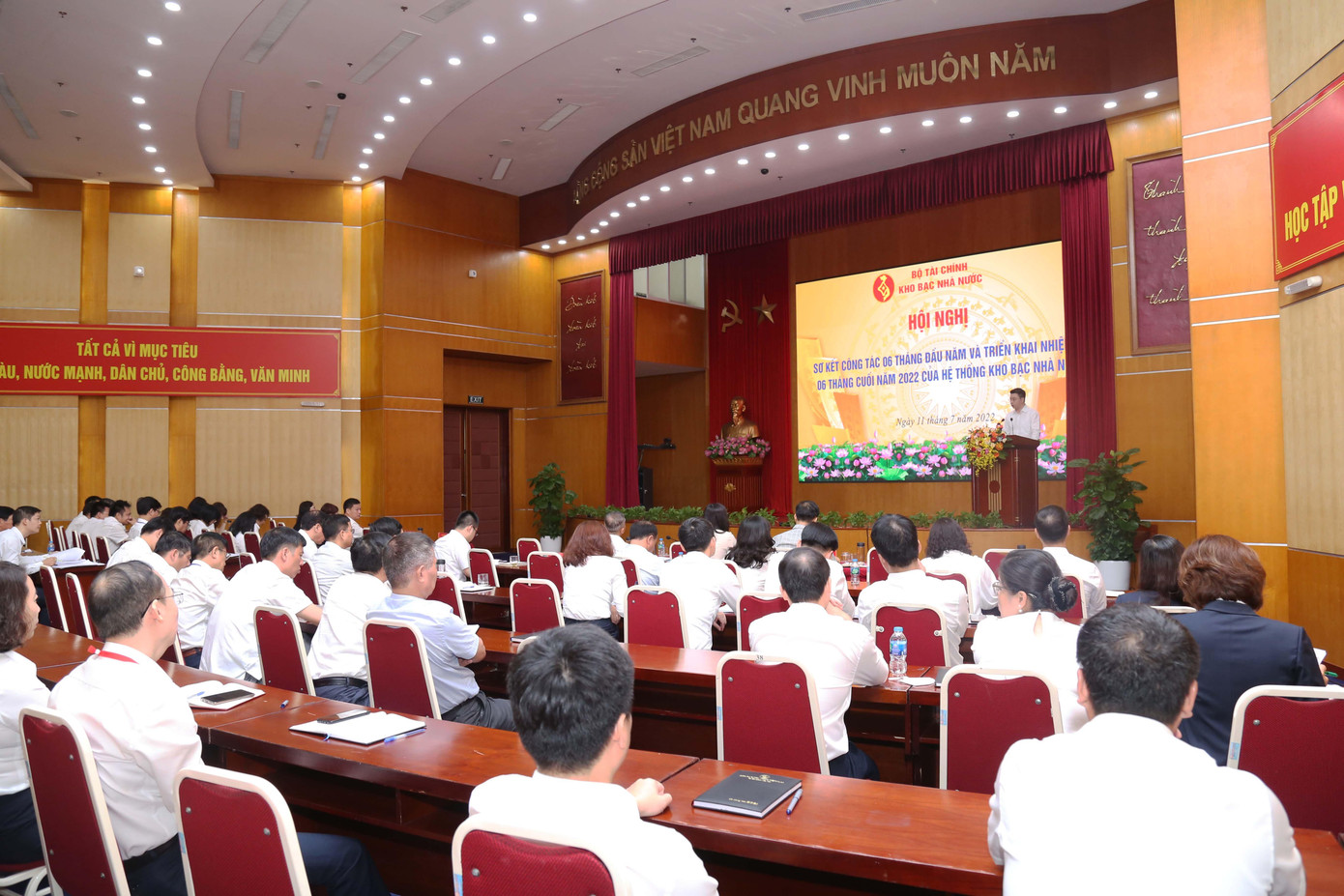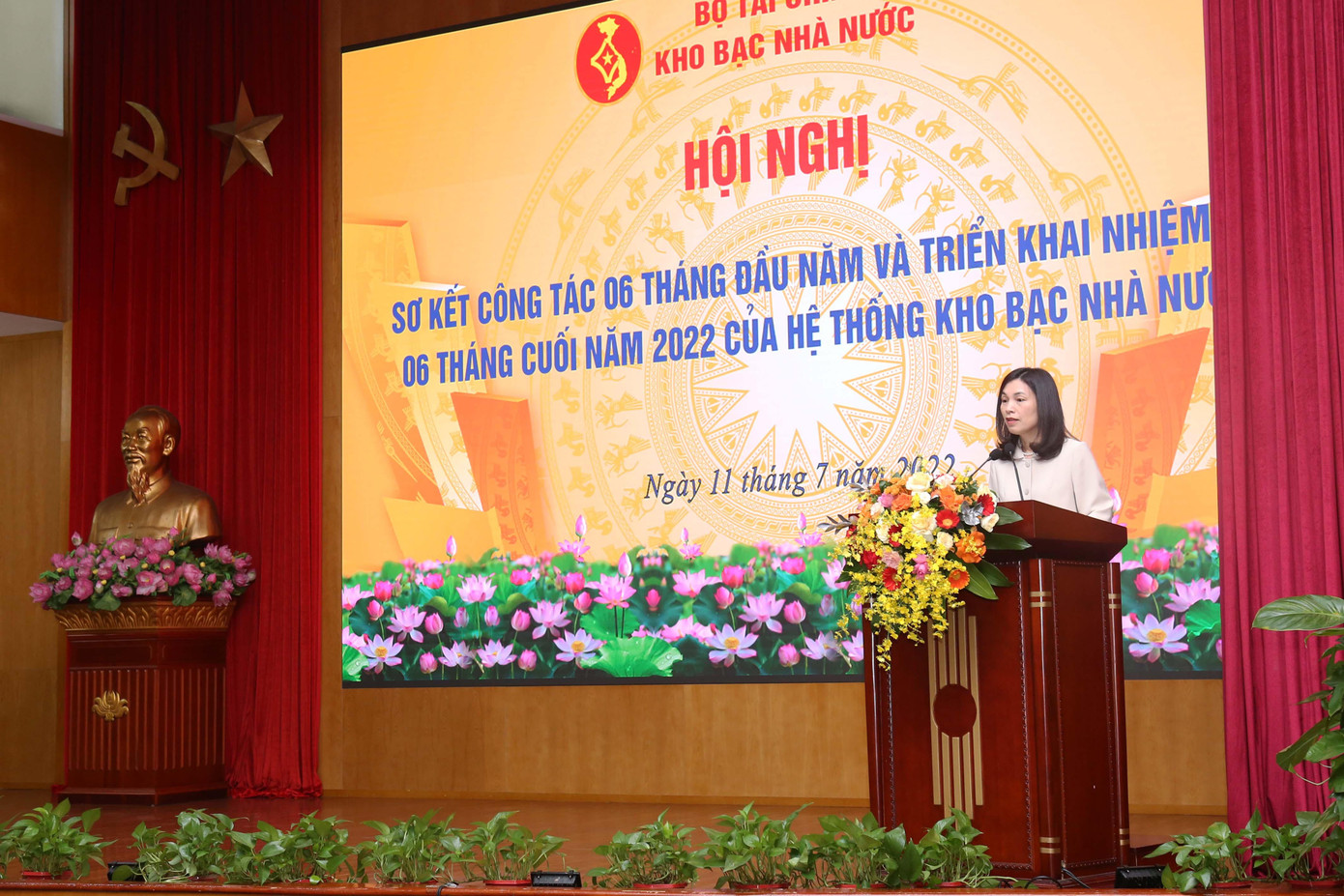 Tại hội nghị, thay mặt Ban Lãnh đạo KBNN, Phó Tổng Giám đốc Trần Thị Huệ đã trình bày báo cáo sơ kết công tác 6 tháng đầu năm và nhiệm vụ trọng tâm 6 tháng cuối năm 2022. Báo cáo cho biết, 6 tháng đầu năm 2022, hệ thống KBNN đã hoàn thành tốt nhiệm vụ, góp phần cùng ngành tài chính thực hiện hiệu quả “mục tiêu kép” của Chính phủ vừa phòng, chống dịch bệnh bảo vệ sức khỏe của Nhân dân, vừa phục hồi và phát triển kinh tế - xã hội. Trong đó, KBNN đã tập trung cải cách quản lý quỹ ngân nhà nước.