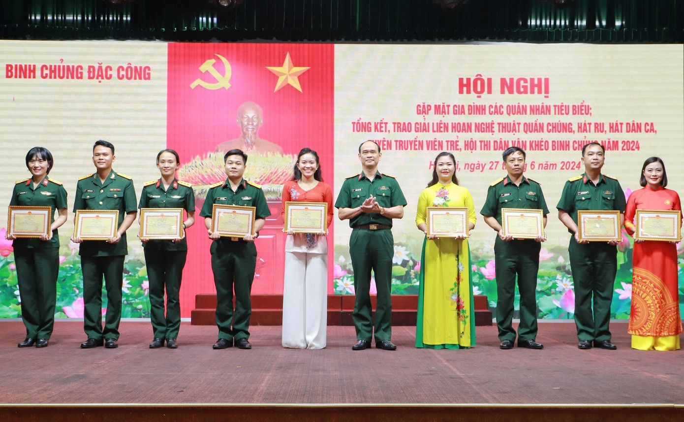 | Đại tá Nguyễn Quốc Duẩn - Bí thư Đảng uỷ, Chính uỷ Binh chủng Đặc công trao thưởng các tập thể, cá nhân và các tiết mục xuất sắc trong Liên hoan nghệ thuật quần chúng, hát ru, hát dân ca, tuyên truyền viên trẻ và Hội thi “Dân vận khéo” năm 2024. |