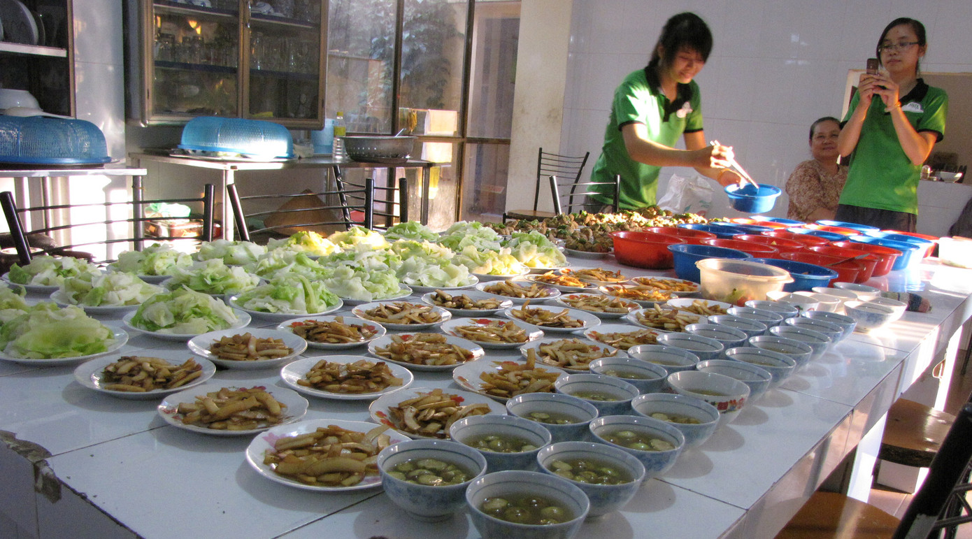 Các món ăn chay trong bữa tối của sĩ tử tại chùa. .