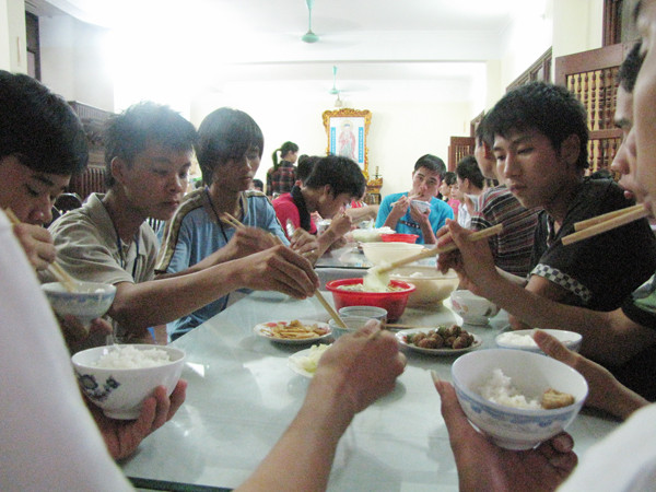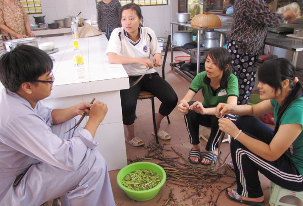 Trong khi đó, một bộ phận sinh viên tình nguyện cùng tăng ni nhà chùa, một số người dân thiện nguyện, chuẩn bị bữa tối cho sĩ tử.