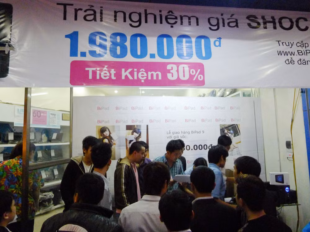 Ngày hôm qua tại số 19 Khâm Thiên, Hà Nội, một số phóng viên đã có mặt và cũng may mắn sở hữu những chiếc BiPad đầu tiên trong chương trình "Trài nghiệm 10,000 máy tính bảng BiPad 9”.