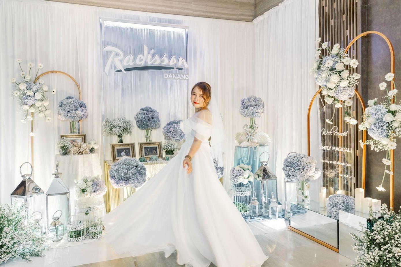 Trong không gian nhẹ nhàng, trang nhã của sảnh cưới Cyan Ballroom, các cặp đôi có thể ngắm mặt biển gợn sóng từ trên cao, lắng nghe tiếng saxophone dịu êm, và có thể tham gia chương trình ‘Thử làm cô dâu’, bốc thăm may mắn với tổng giá trị giải thưởng lên đến 10 triệu đồng. Sự kiện cưới đầu tiên trong năm 2022 do Radisson Hotel Danang tổ chức còn mang đến nhiều màn trình diễn đẹp mắt với bộ sưu tập soiree, veston và áo dài đến từ các thượng hiệu nổi tiếng tại TP.Đà Nẵng. Ngoài ra, khách tham dự còn được chiêm ngưỡng vẻ đẹp truyền thống của Áo dài cưới Nhật Bình và tham gia buổi trò chuyện cùng các chuyên gia tư vấn cưới, cùng cặp đôi LGBT Tường Vân & Thu Thảo.