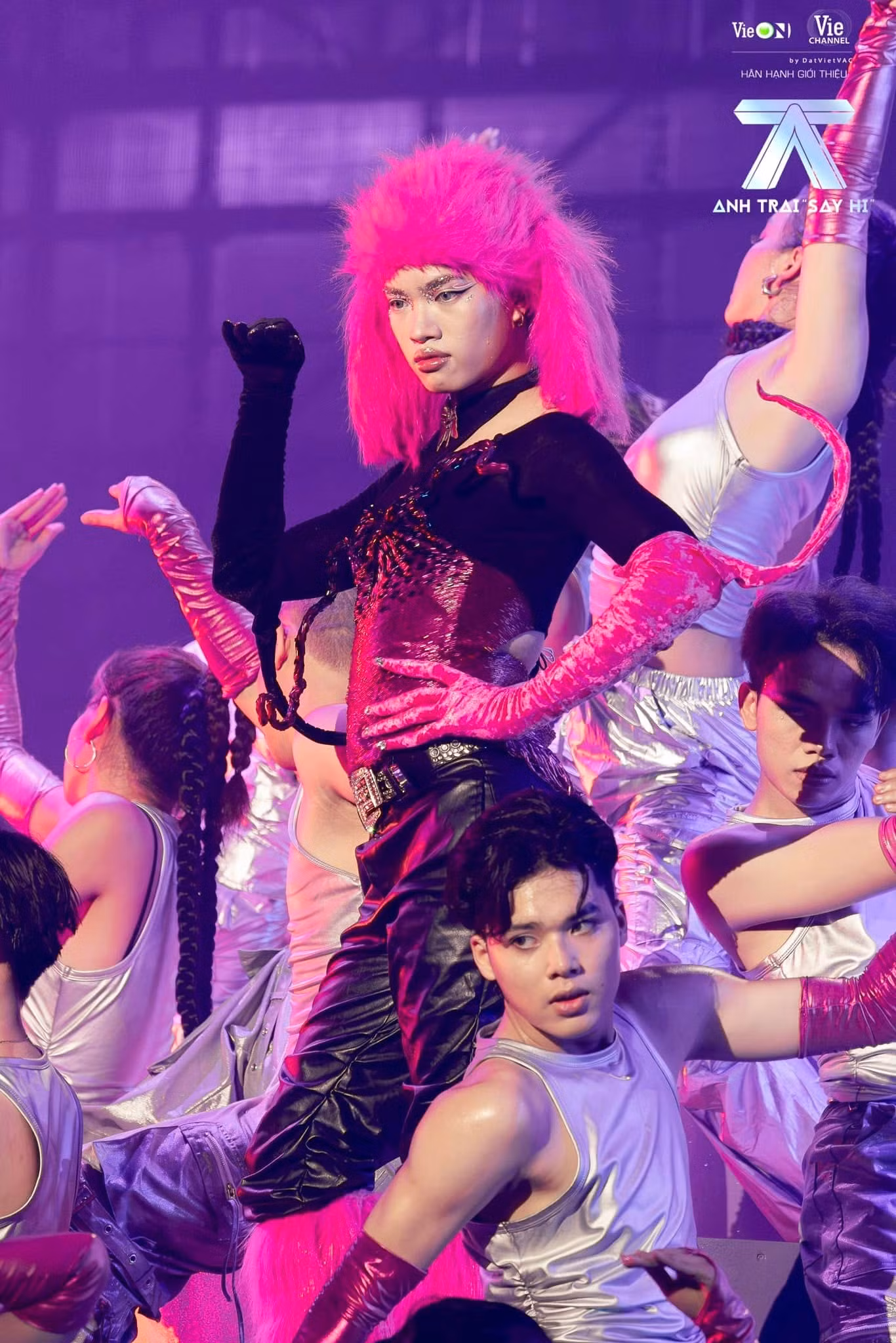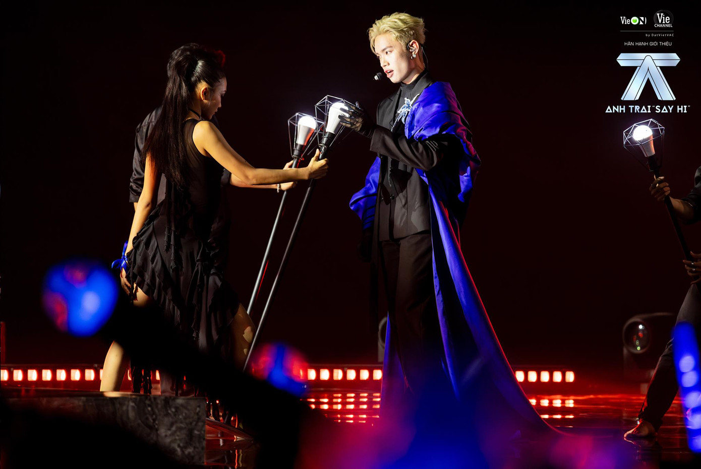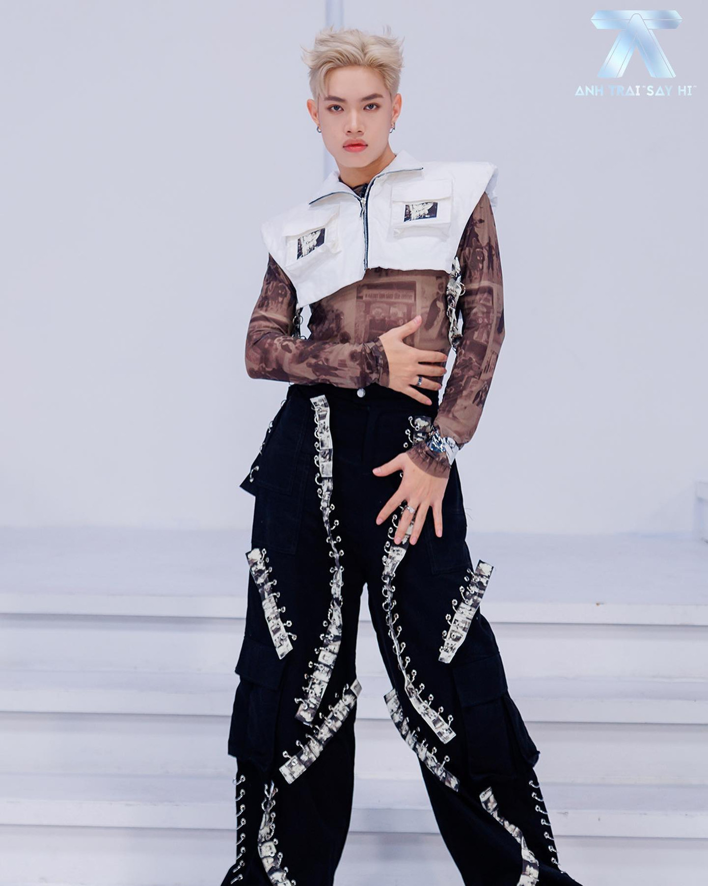 Ở các phần thi nhóm, ngôi sao sinh năm 2001 tuân thủ dresscode, hài hòa với tổng thể nhưng vẫn nổi bật nhờ cách phối phụ kiện, làm tóc, make-up.