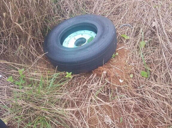 Hiện nhà chức trách đã tìm thấy 1 chiếc lốp trong cặp lốp trước của chiếc máy bay bị bật ra khi hạ cánh.