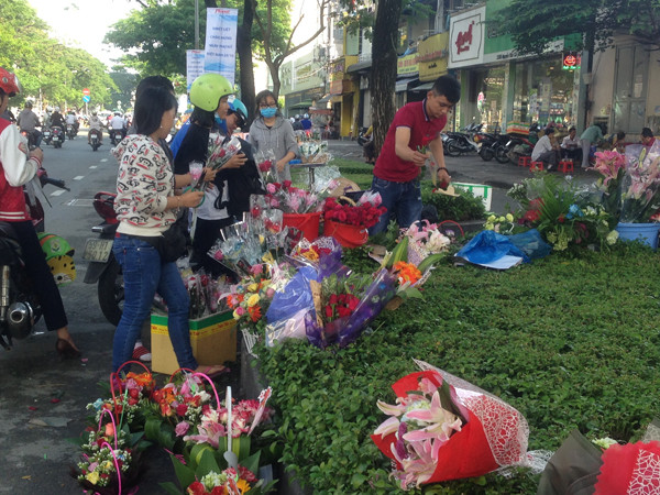 Bạn Nguyễn Thị Hà (SV trường ĐH KHXH&NV TPHCM) chia sẻ: “Mình bày hàng từ tối hôm qua. Đây là năm thứ hai mình kinh doanh hoa bán trong những dịp như 8/3, 20/10, 20/11… So với năm ngoái, giá hoa không tăng, cụ thể hoa hồng đỏ chỉ 10.000 đồng/bông nhưng rất vắng khách. Từ sáng giờ chỉ bán được hơn chục khách, đa số họ chỉ mua hoa lẻ chứ không mua bó hoặc lẵng. Đợt này mình đặt 500 từ nhà vườn Đà Lạt, tổng tiền cũng vài triệu, nếu bán không hết thì chắc chắn “ôm” lỗ”.