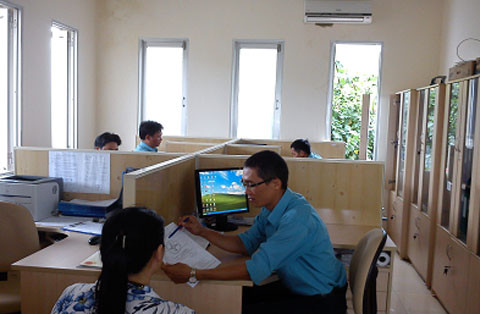 Tiêu chí sử dụng điện tiết kiệm cũng đang được áp dụng trong công tác xây dựng, trang trí nội thất nơi làm việc của CBCNV. Nhà làm việc Điện lực Phú Quý xây dựng giai đoạn 2 được thiết kế kiểu nhà hộp, nhiều khung cửa sổ một cánh lắp kính chịu lực, tạo không gian thoáng mát. Tất cả thiết bị trang trí nội thất như bàn, ghế, tủ đựng hồ sơ, trần nhà, màu sơn tường,… đều sử dụng màu sáng, tông sữa rất hài hoà, tạo không gian sáng với ánh sáng tự nhiên. Bên ngoài nhà làm việc trồng nhiều cây tán lớn, tạo môi trường xanh, sạch, đẹp, không khí mát dịu cả ngày làm cho căn phòng làm việc luôn thoáng mát. Khi bước vào phòng làm việc chúng ta cảm giác thoải mái dễ chịu, mọi góc mọi nơi đều hài hoà với ánh sáng tự nhiên và gió thoảng nhè nhẹ với vài cánh cửa sổ mở toang.