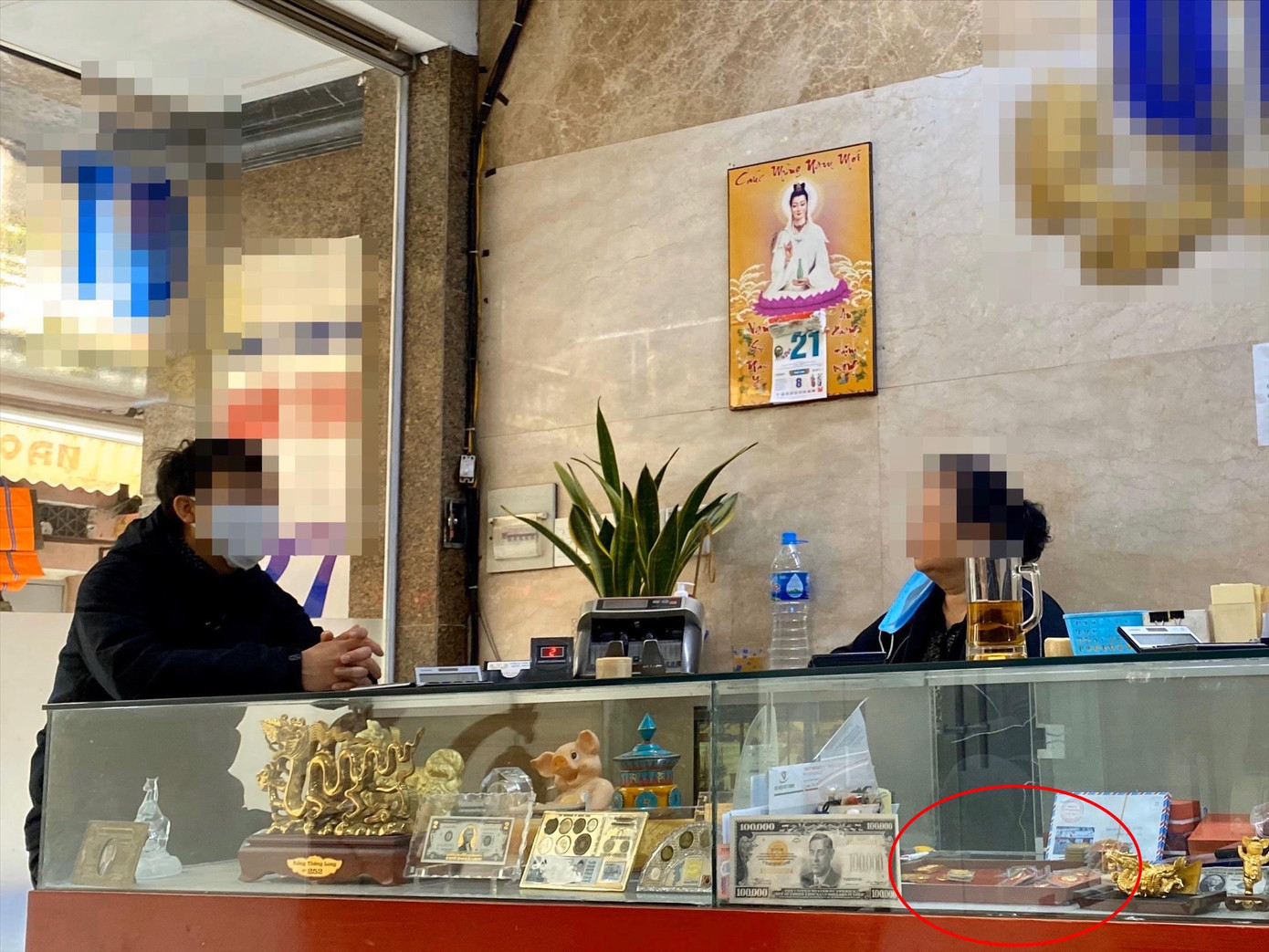Bên trong tiệm vàng Q.M, khách hàng lần đầu giao dịch có lẽ không khỏi bất ngờ khi quầy, tủ trống trơn, hoặc có chăng chỉ là một khay vàng miếng nhỏ, lọt thỏm giữa cửa hàng bề thế. Giá vàng cũng không được niêm yết trên bảng kệ.