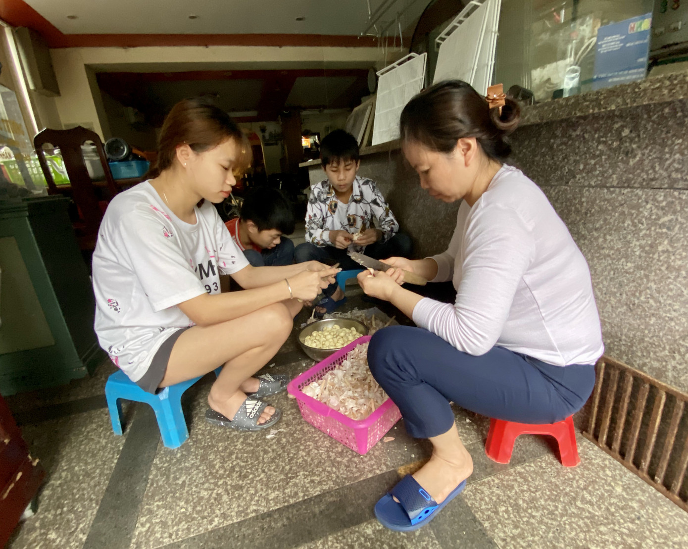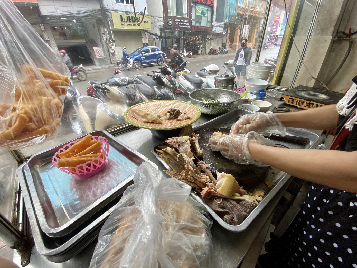 Chuẩn bị hàng cho buổi bán trở lại đầu tiên, dự kiến là thứ bảy (25/4), chị Tươi nhân viên quán phở (Trung Tự, Hà Nội) cho biết: “Quán hôm nay chưa chuẩn bị xong, còn nhiều đồ phải làm nên vẫn đóng cửa. Chiều nay thì bắt đầu kê dọn lại bàn ghế”