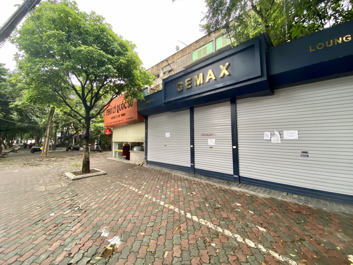 Một loạt cửa hàng bên dưới các khu tập thể (Hồ Đắc Di, Hà Nội) cũng đóng cửa im lìm. Cơm văn phòng, quán ăn sáng hay các cửa hàng thời trang tại đây đều chưa hoạt động trở lại