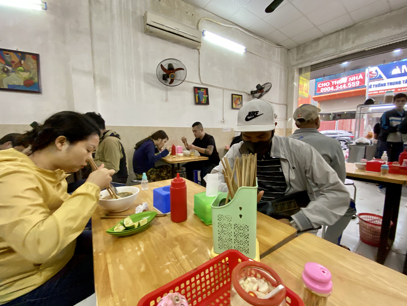 Một số quán ăn bắt đầu mở cửa dọn dẹp nhưng chưa đón khách. Chủ của các quán ăn này cho biết, nghỉ dịch dài nên nhân viên phần lớn đã về quê, hôm nay chưa lên kịp nên không có người làm, nguyên liệu cũng chưa chuẩn bị kịp nên phải rời lịch bán lại sang vài ngày. Cũng có chủ quán cho biết, hôm nay chưa đẹp ngày nên không mở hàng