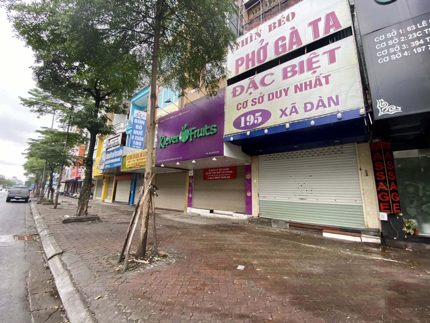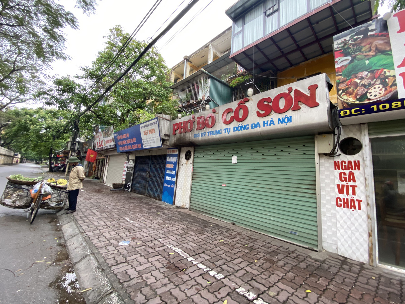 Dù thuộc nhóm hàng kinh doanh được mở cửa trở lại nhưng nhiều địa điểm trên phố Xã Đàn (Hà Nội) vẫn cửa đóng then cài. Người dân sống quanh đây cho biết, nhiều quán đóng hẳn từ 1/4, đến tối qua hay sáng nay vẫn chưa thấy dấu hiệu dọn hàng