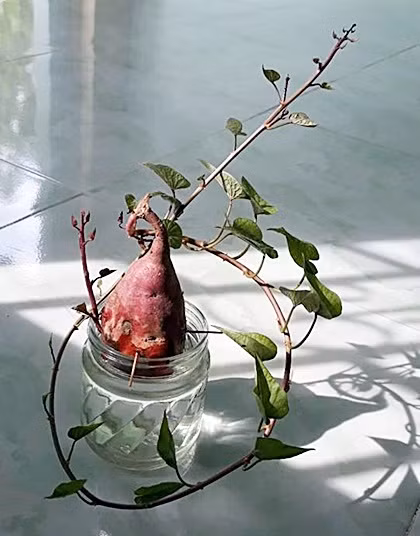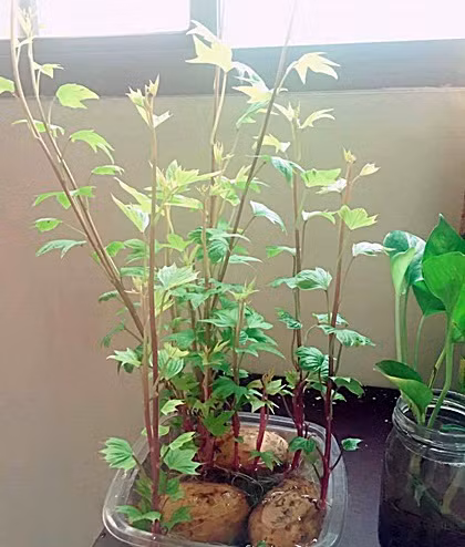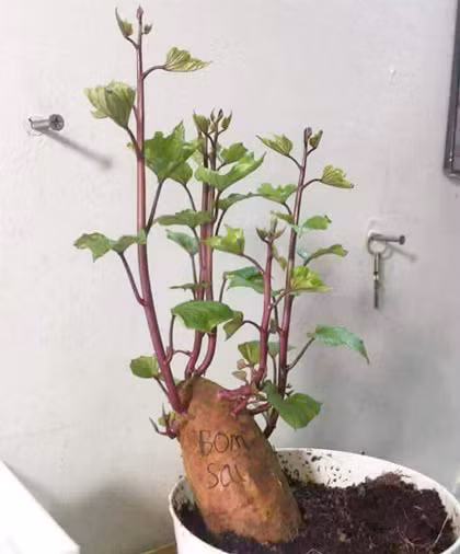 Anna Vũ, ở Hà Nội, cho biết cô mua khoai lang về ngâm nước, khoảng 4,5 ngày sau củ nảy mầm, sau đó phát triển thành ngọn, vươn lên rất nhanh. Trong vòng hai tuần cây đã có nhiều lá.