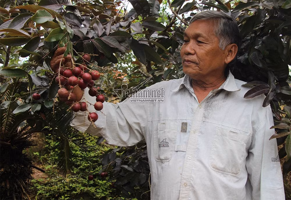 Ông Huy sau đó chiết nhánh nhãn tím này ra trồng. Từ cây nhãn cho trái màu tím này, ông nhân giống được khoảng 50 gốc nhãn trồng quanh nhà