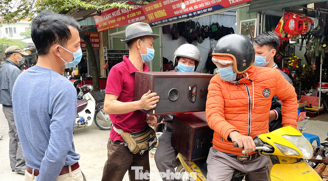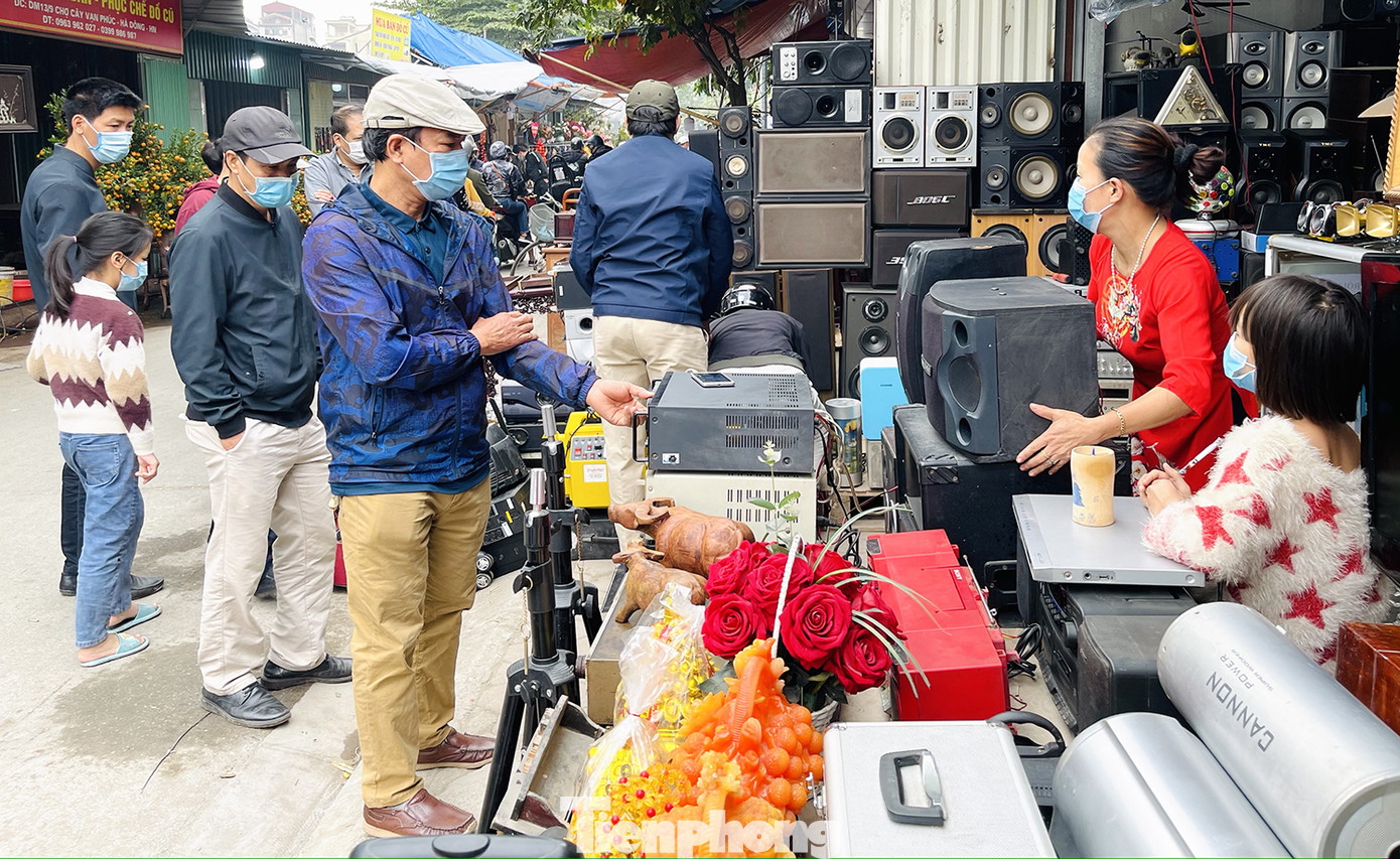 Người mua phấn khởi khi lựa chọn được cặp loa cổ ứng ý sau khi khảo sát khắp lượt khu chợ.