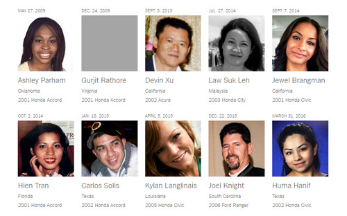 Danh sách 10 trong số 14 người thiệt mạng vì túi khí Takata. Ảnh: NYTimes.