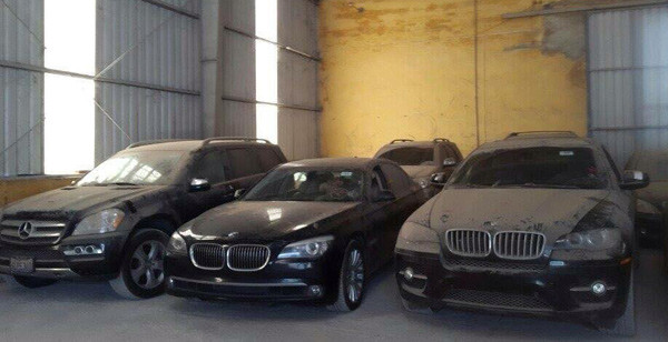 Trong đó, có một số chiếc xe như Ferrari 430 Spider, Ferrari 430 Scuderia, Maserati GranTurismo, Mercedes-Benz GL-Class và BMW 7-Series. Tất cả vẫn ở trong tình trạng bị một lớp bụi dày phủ lên.