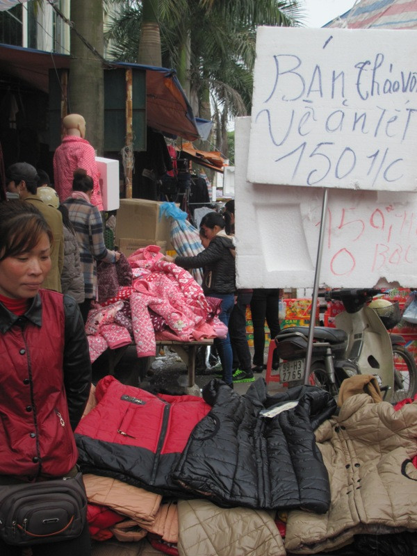 Anh Tư cho hay, 2 chiếc áo len xịn, có giá 150 ngàn đồng; áo lông siêu nhẹ, hàng Quảng Châu nay hạ giá chỉ còn 130 ngàn đồng. Nói chung, hòa vốn, các tiểu thương tại đây cũng bán.