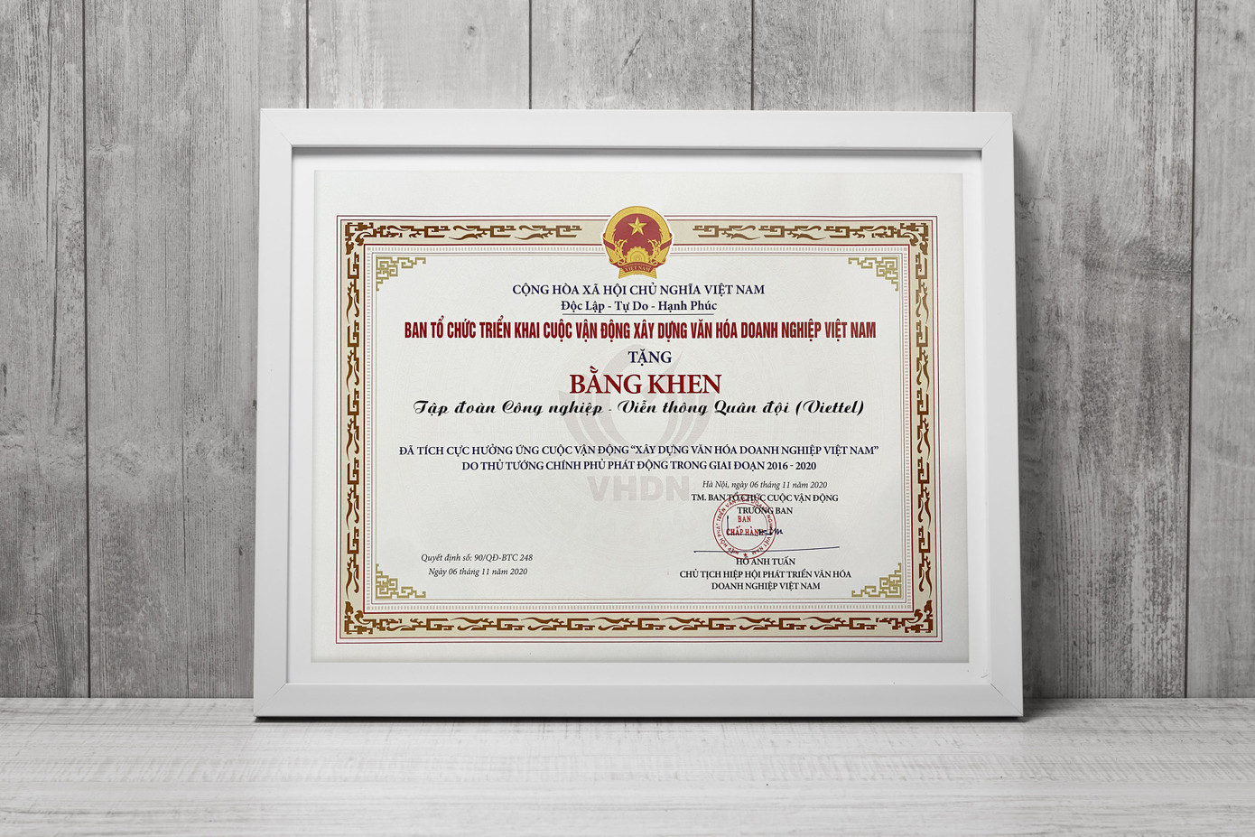 Viettel cũng luôn tích cực xây dựng và thực thi văn hóa với việc xác định 8 giá trị cốt lõi Viettel, chuẩn mực người Viettel, quy tắc ứng xử Viettel. Năm 2020, cùng với tuyên bố thực hiện sứ mệnh Kiến tạo xã hội số, Viettel đã xây dựng văn hóa số gồm 5 đặc tính: Sáng tạo (Innovation); Hướng tới khách hàng (customer centric); Linh hoạt (Agility); Văn hóa mở và hợp tác (Open Culture); Tư duy số (Digital- first mindset).