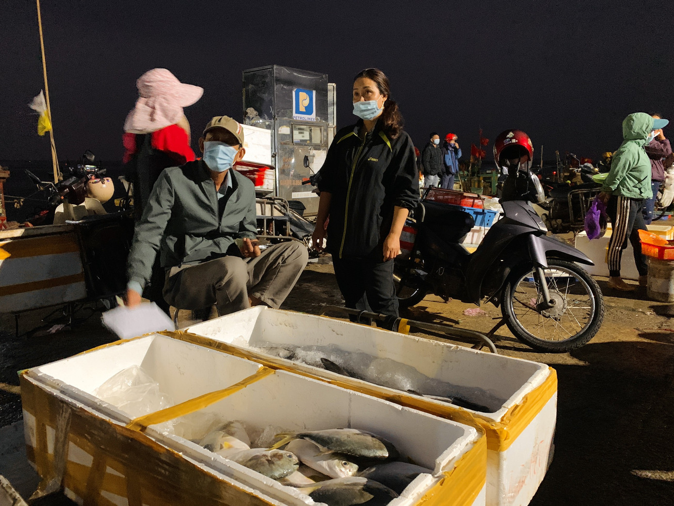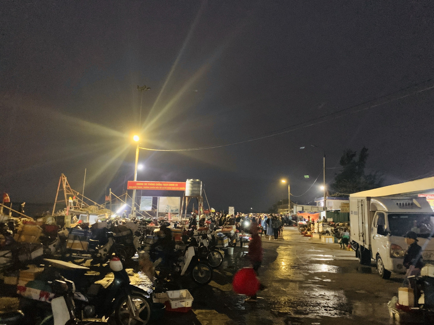 Hoạt động buôn bán ngay tại khu vực cảng. Chỉ trong khoảng hơn 1h đồng hồ, các loại cá tôm được đưa bán cho các tiểu thương để ra chợ.