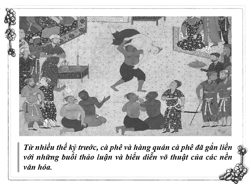 Trong nhiều thế kỷ, cà phê hiển nhiên trở thành thức uống được các võ sĩ từ Tây sang Đông yêu thích, và hàng quán cà phê theo đó cũng là không gian quan trọng, đóng vai trò lớn trong sự phát triển của các hệ thống võ thuật.