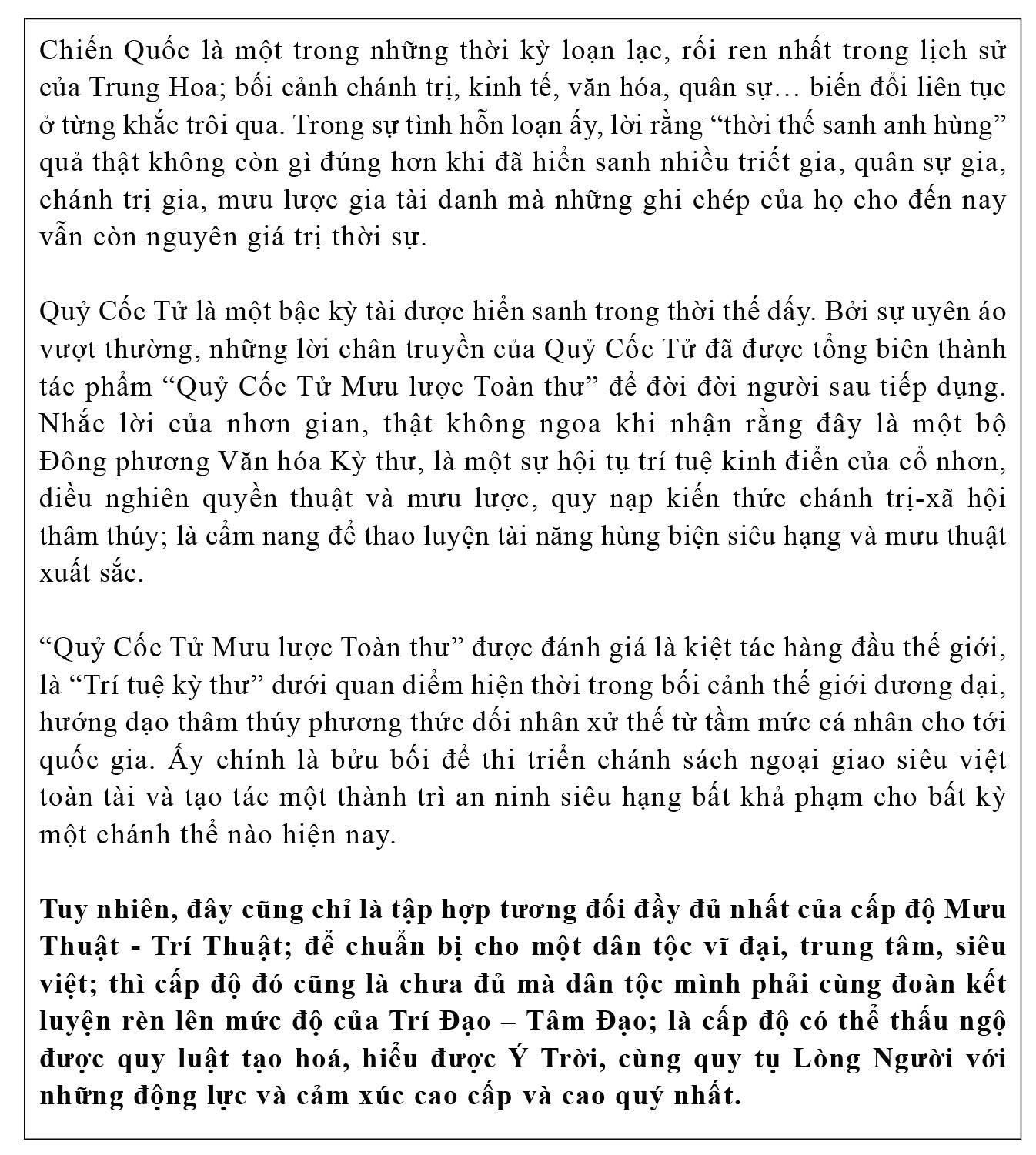 (Đón đọc kỳ sau: Quỷ Cốc Tử Mưu lược toàn thư – Ngỗ hợp)