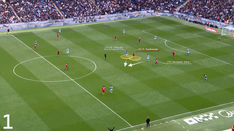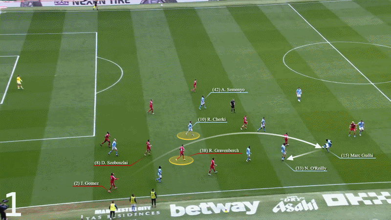 Bàn thứ hai của City, bàn gần như “kết liễu” trận đấu, minh hoạ cả hai điều đó. Phút cuối hiệp một, Liverpool tự đánh mất bóng từ chính quả ném biên của mình và gần như không có chút nỗ lực nào để chặn đà tấn công của City.