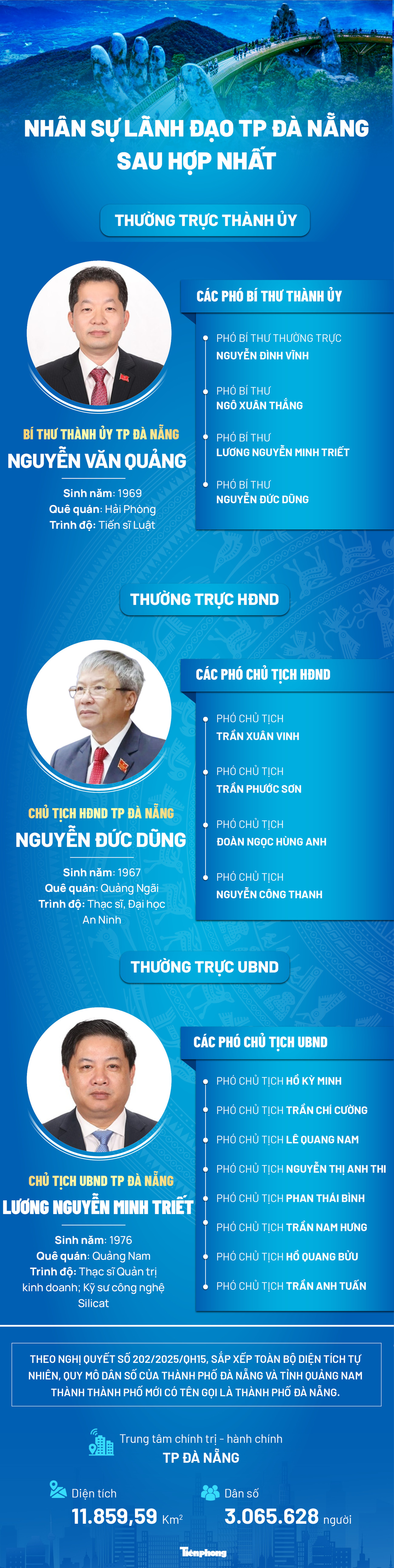 TPO - Ngày 30/6, tại buổi công bố các nghị quyết, quyết định của Trung ương và địa phương liên quan đến việc sắp xếp đơn vị hành chính tại TP. Đà Nẵng, ông Nguyễn Văn Quảng được Trung ương chỉ định là Bí thư Thành ủy Đà Năng; ông Nguyễn Đức Dũng được chỉ định là Chủ tịch HĐND, ông Lương Nguyễn Minh Triết được chỉ định là Chủ tịch UBND TP Đà Nẵng.