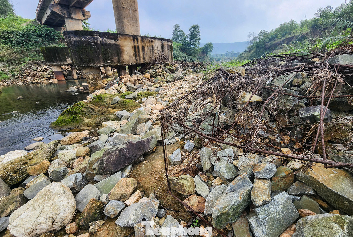 | Phía dưới nhiều rọ bị xé toang sau các đợt mưa lũ, sắt thép nằm trơ khung dưới mặt sông suối. |
