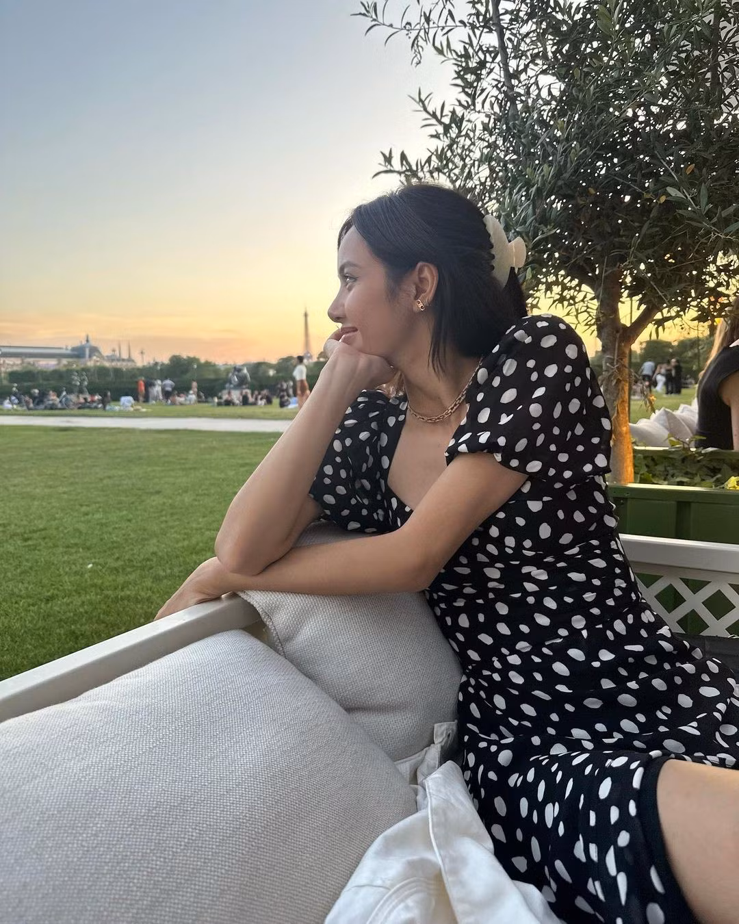 | Đôi xăng đan thạch mà Lisa mang trở nên sống động khi kết hợp với áo crop top màu đen và váy trơn nhuộm màu nước, càng làm tôn lên vẻ quyến rũ cổ điển. Nhìn cách Lisa tận hưởng buổi chiều trước tháp Eiffel, khiến bạn cảm thấy rằng đôi dép xăng đan thạch quả thật rất phù hợp cho tâm trạng dã ngoại mùa Hè. |