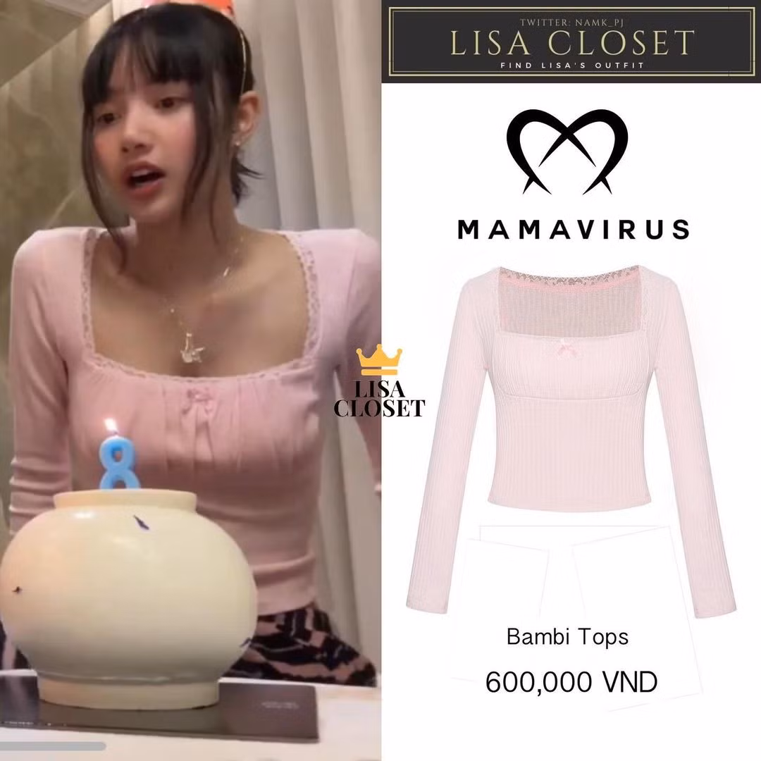 Lisa BLACKPINK hiện đã lăng xê 2 thương hiệu Việt trong tháng này. Ngày 8/8, trong buổi livestream kỷ niệm 8 năm hoạt động của BLACKPINK, giọng ca Rockstar diện thiết kế cổ vuông Bambi Tops của thương hiệu MAMAVIRUS. Nhiều khán giả đồn đoán đây là "chiến lợi phẩm" của Lisa BLACKPINK trong chuyến shopping "chớp nhoáng" tại TP.HCM hồi tháng 10 năm ngoái.