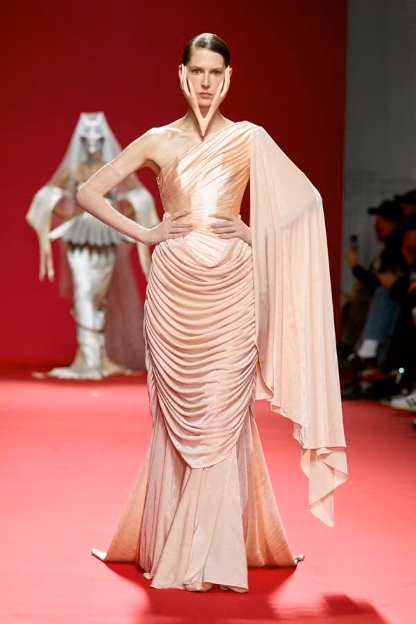 Lisa BLACKPINK diện mẫu đầm đã được chỉnh sửa từ BST Xuân Hè 2024 của Robert Wun. Thiết kế trang phục được cho là lựa chọn tinh tế của đội ngũ stylist giúp làm nổi bật trang sức. Các đường xếp lớp, có liệu ứng bóng, lấp lánh theo chuyển động gợi nhớ tới trang phục của phụ nữ thời La Mã cổ đại.