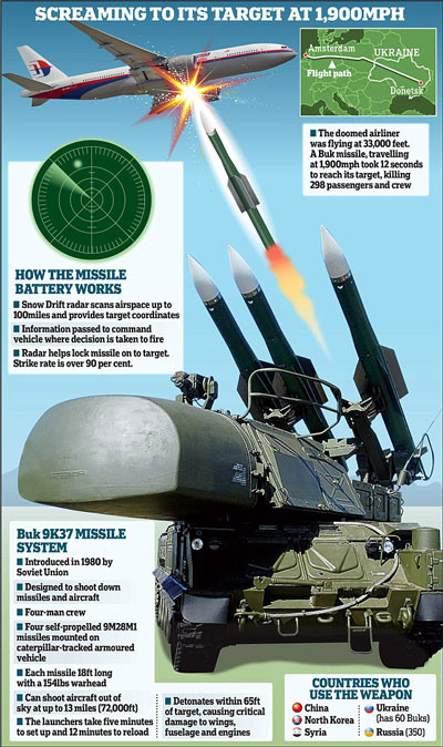 Nhiều nguồn tin cho rằng tên lửa bắn vào MH17 là tên lửa Buk, một hệ thống tên lửa tinh vi và người sử dụng cần phải được huấn luyện kỹ lưỡng trong nhiều tháng.