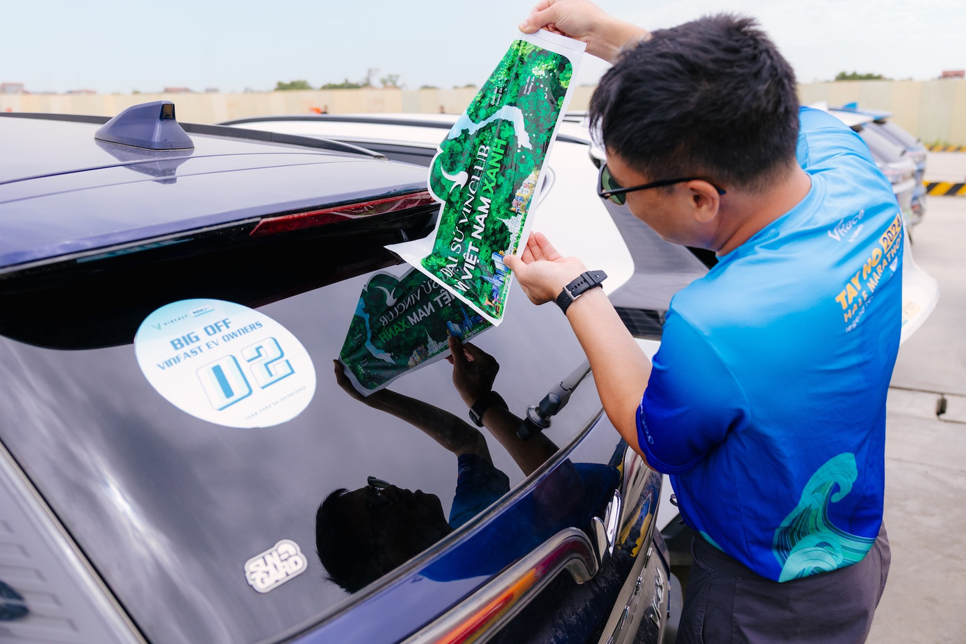 Háo hức là tâm trạng chung của rất nhiều chủ xe điện trong buổi sáng đặc biệt của Ngày Hội Xanh 2025. Rất đông chủ xe đã cùng dán thông điệp “Vì Việt Nam Xanh” lên chiếc xe điện của gia đình để chuẩn bị cho màn “lên hình” siêu hoành tráng.