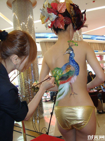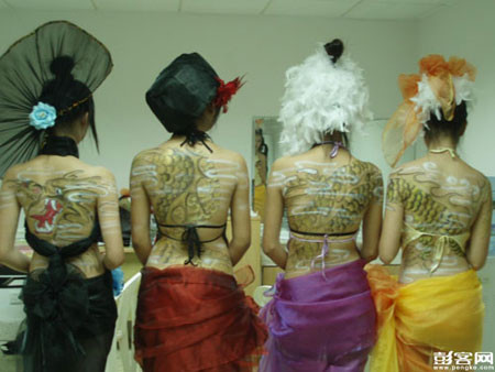 Đêm trước khi làm người mẫu vẽ lên cơ thể, Hân Hân không uống nước vì cơ thể sẽ bị căng lên hơn vào hôm sau và cô cũng không uống nước liên tục suốt thời gian làm mẫu để có thể “trụ” được lâu hơn trong quá trình họa sĩ vẽ.